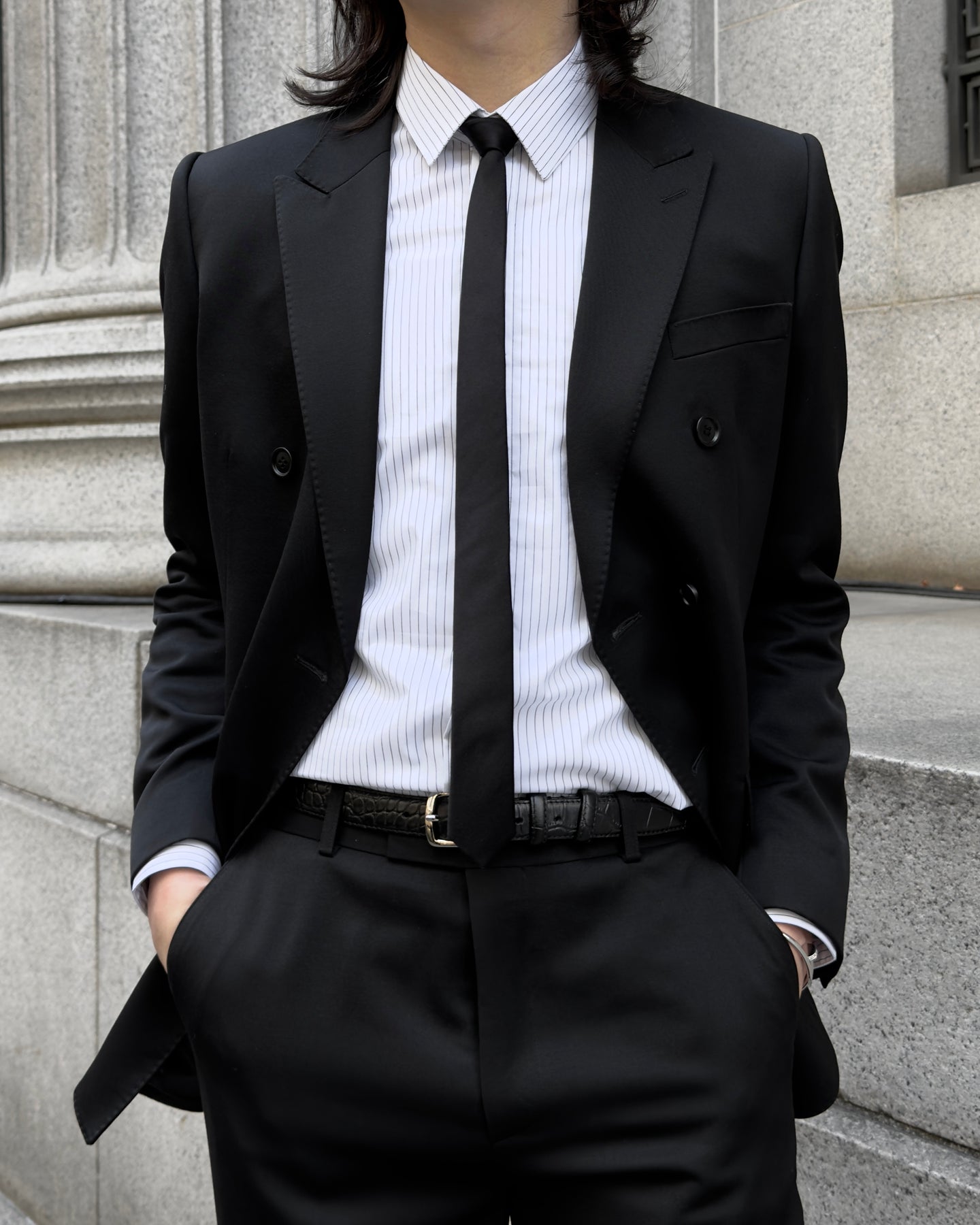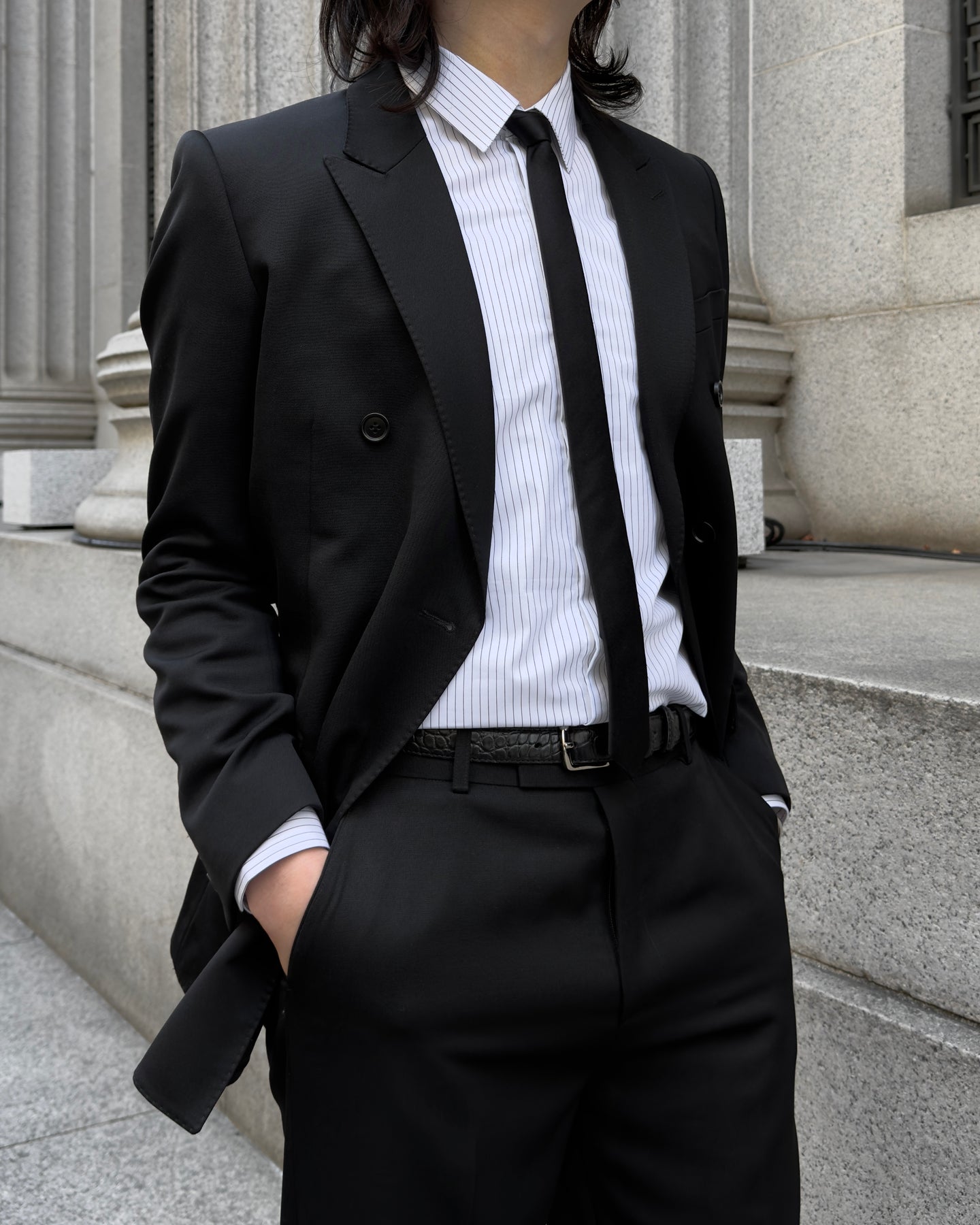 Fine stripe placement and clean proportions create a polished, effortless look. Designed with a balanced silhouette that stays sharp from every angle.